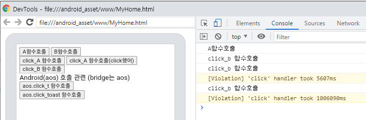 안드로이드 로컬에서 Html의 javascript를 호출 하는 코드 구현.