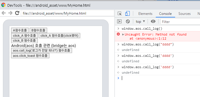 <input type="button" value="aos.call_log('로그가 전달 되나?') 함수호출" onclick="window.aos.call_log('로그가 전달 되나?')"/> <br>
